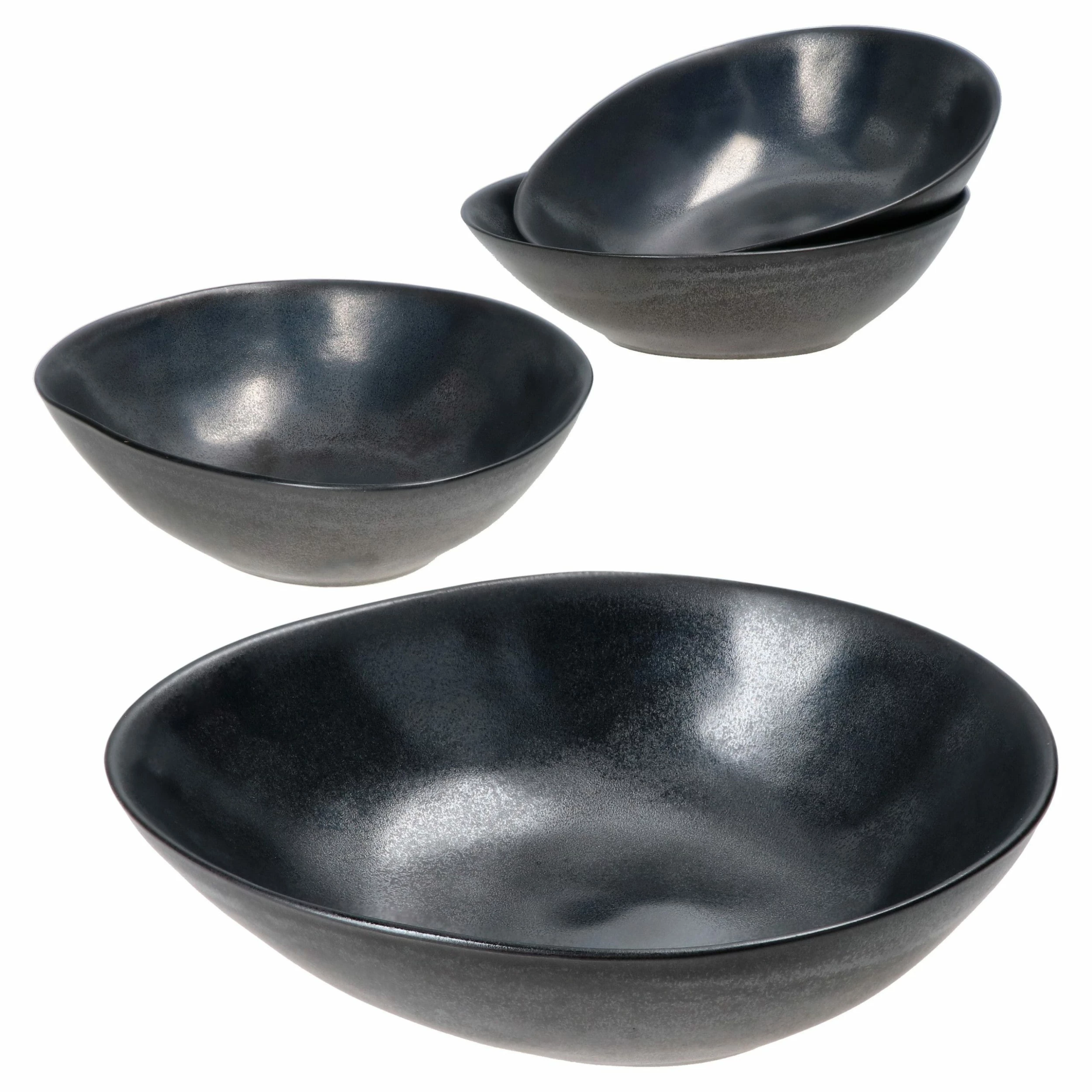 - 4-teiliges Müsli-Schalen Set Manhattan Nero oval handgefertigt