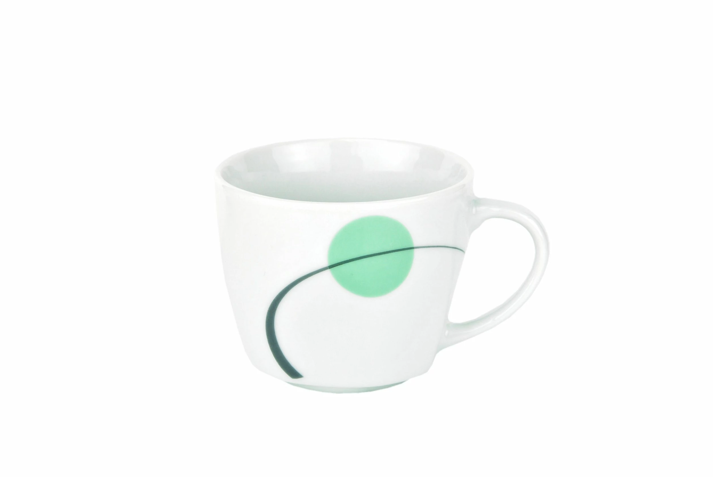 Das abstrakte Dekor verleiht den Produkten der CORONA-Serie den ganz besonderen Frische-Kick, denn auf dem weißen Porzellan kommt das dreifarbige Dekor mit abstrakten Elementen besonders gut zur Geltung.