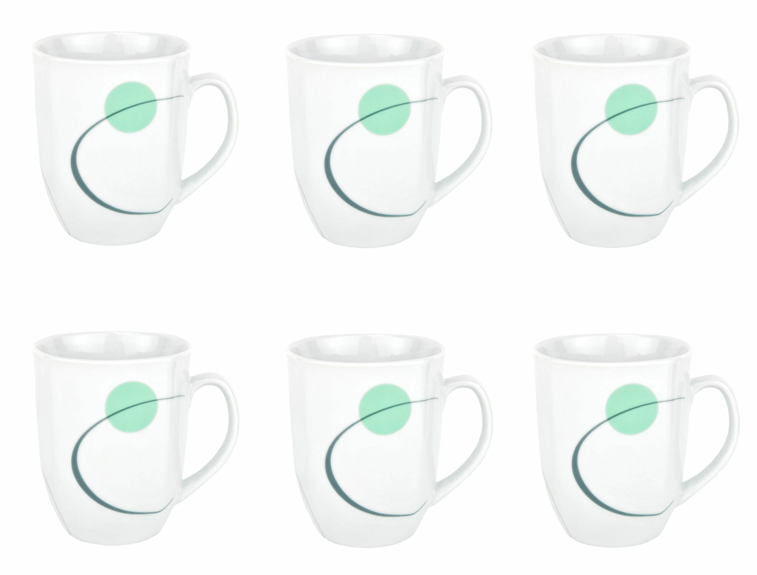 Null 6er Set Kaffeebecher Palazzo 33cl – Kaffeetasse Aus Weißem Porzellan Mit Dekor-Kreisen In Grau Und Dunkelrot
