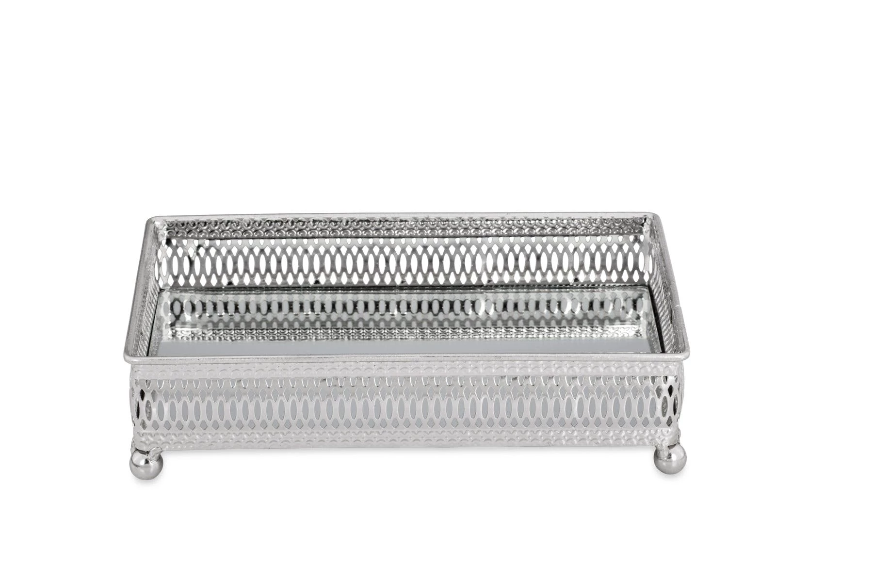 Galerie-Spiegeltablett Rechteckig, Klein, vernickelt, 23,5 x 15,5cm, H 4,0cm Gesamt-H 6,0 cm