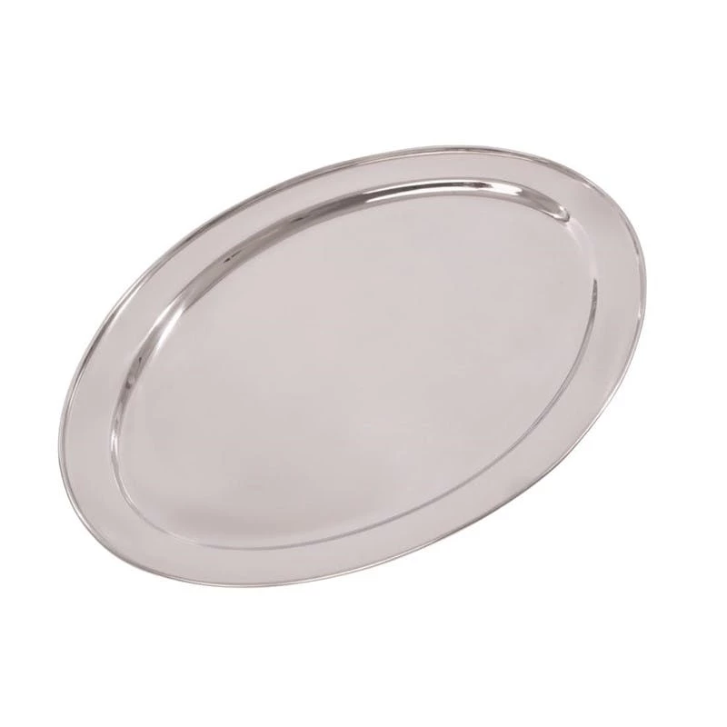 Großes, ovales Galerie-Tablett aus versilbertem Messing. Das Tablett hat eine Höhe von 4,5 cm, eine Länge von 26,0 cm und eine Breite von 19,0 cm.