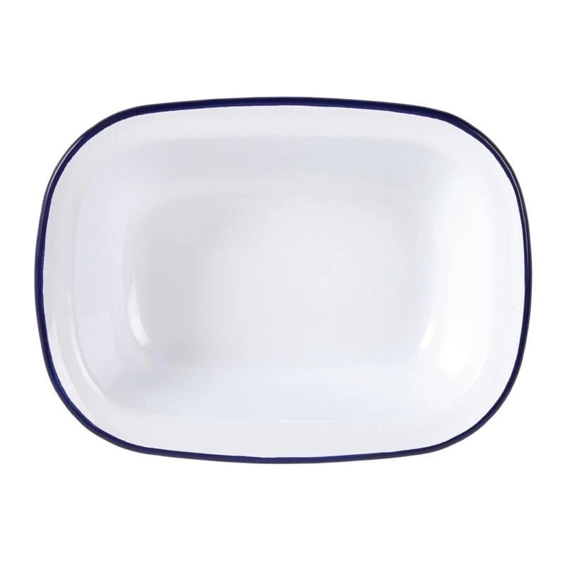 5 x 13,5 x 18cm | Edelstahl und Glasemail | weiß mit blauem Rand 0