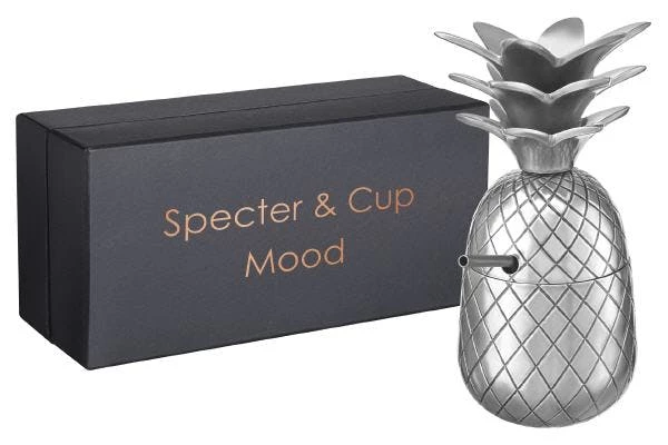 Mood – sorgt für tolle Stimmung bei jedem Anlass. Als Dekoration oder Becher, verzückt das Set mit seinem eleganten Aussehen den Raum. Die Becher eignen sich durch die kleine Öffnung am Hals der Ananas super als Trinkbecher und sind ein wahrer Blickfang. Im Set ist zudem ein passender Strohhalm enthalten. Kundenhinweis: Specter & Cup verwendet nur erstklassige Materialien und verzichtet auf chemische Beschichtungen, sodass Sie Ihren Drink Bedenkenlos genießen können. Beste Qualität und Kundenerlebnis sind die Kundenversprechen von Specter & Cup. Um disen erstklassigen Service anbieten zu können durchlaufen Specter & Cup Artikel eine Vielzahl von Qualitätskontrollen.. Größe: Höhe 19 cm; Durchmesser (Außen) 9 cm; Durchmesser (Innen) 7 cm; Inhalt: ca 300 ml, Material: Aluminium (in der Farbe Silber), Lieferumfang: 1 Ananas Cocktailbecher mit Strohhalm; 1 Premiumverpackung, Gewicht je Cocktailbecher 450 gr, Qualitätsprodukt von Specter & Cup
