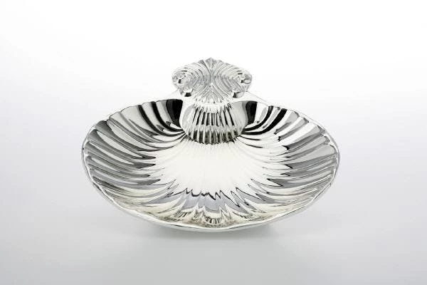 Schale im Muscheldesign aus versilbertem Material. Die Schale hat eine Größe von 12,5 x 13 cm.