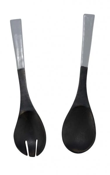 NEU Salatschüsselset mit Vorlegebesteck, Mangoholz, grau lasiert, handgefertigt, *Germany*