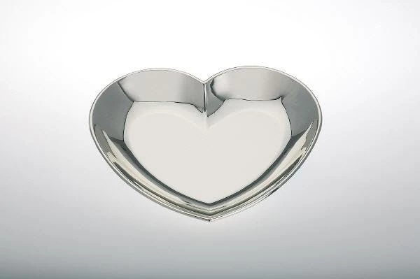 Versilberte, anlaufgeschützte Herz Schale. Die Herz Schale hat eine Größe von 14 x 15 cm.