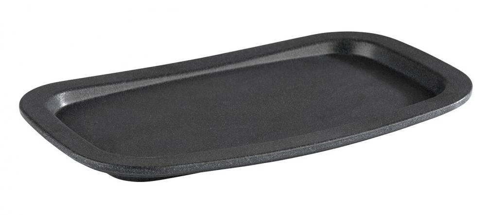 Hochwertige rechteckige und graue Servierplatte aus Steingut. Das Produkt hat die Maße von 25 x 14,5 cm.