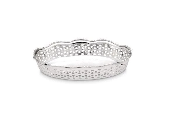 Rechteckiges Tablett in gehämmerter Optik, aus Edelstahl. Das Tablett hat eine Länge von 54,0 cm, eine Breite von 19,0 cm und eine Höhe von 1,5 cm.