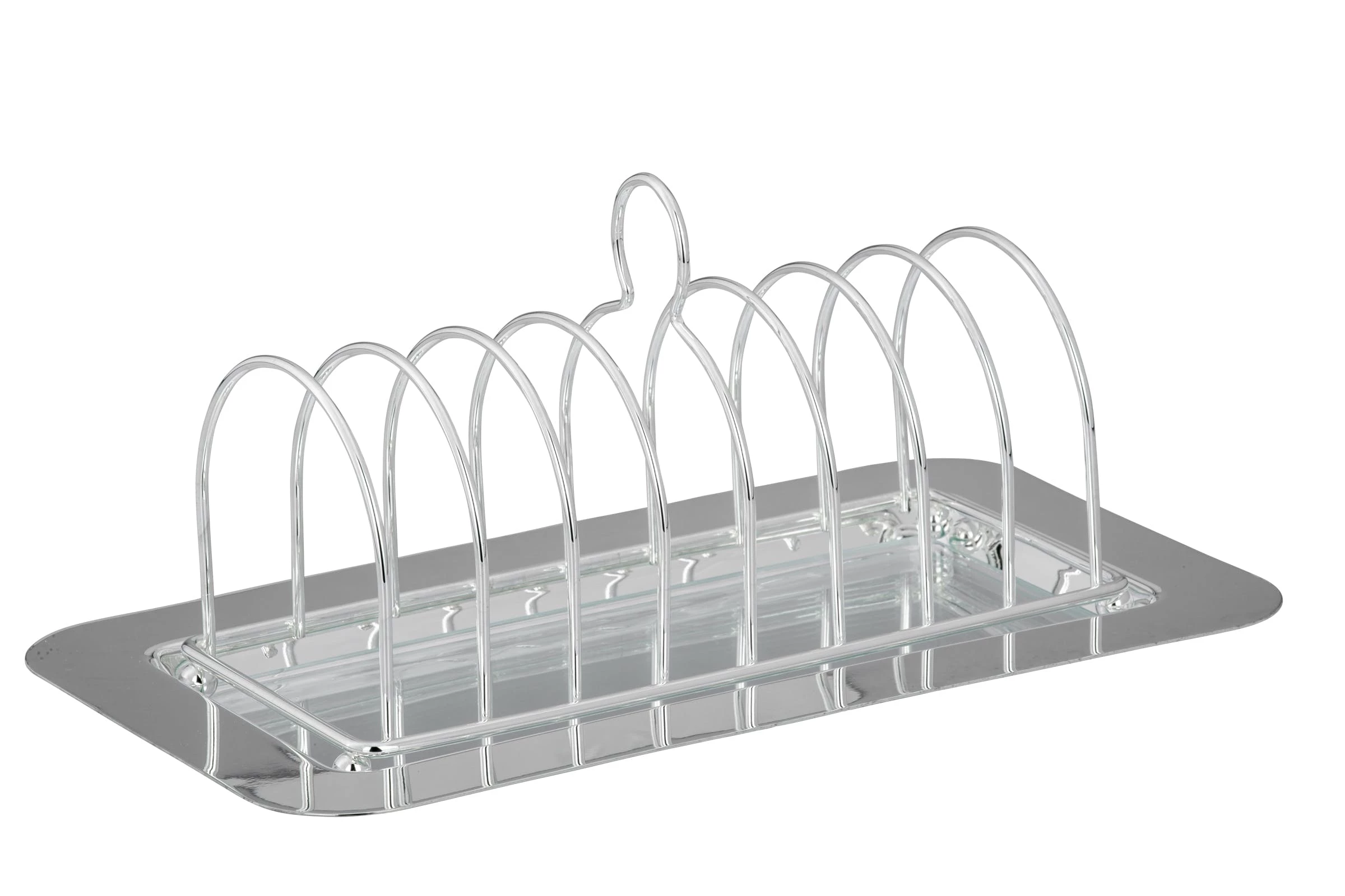 Toast-Ständer auf Tablett für 8 Toast, inklusive Glasscheibe, versilbert, Tablett – Aussen-D: 28,0 x 16,0cm, Rack-D 22,0 x 9,5cm